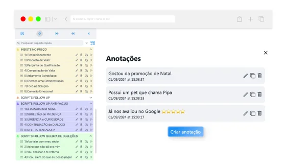 Registre observações importantes e histórico de interações para um atendimento mais personalizado.