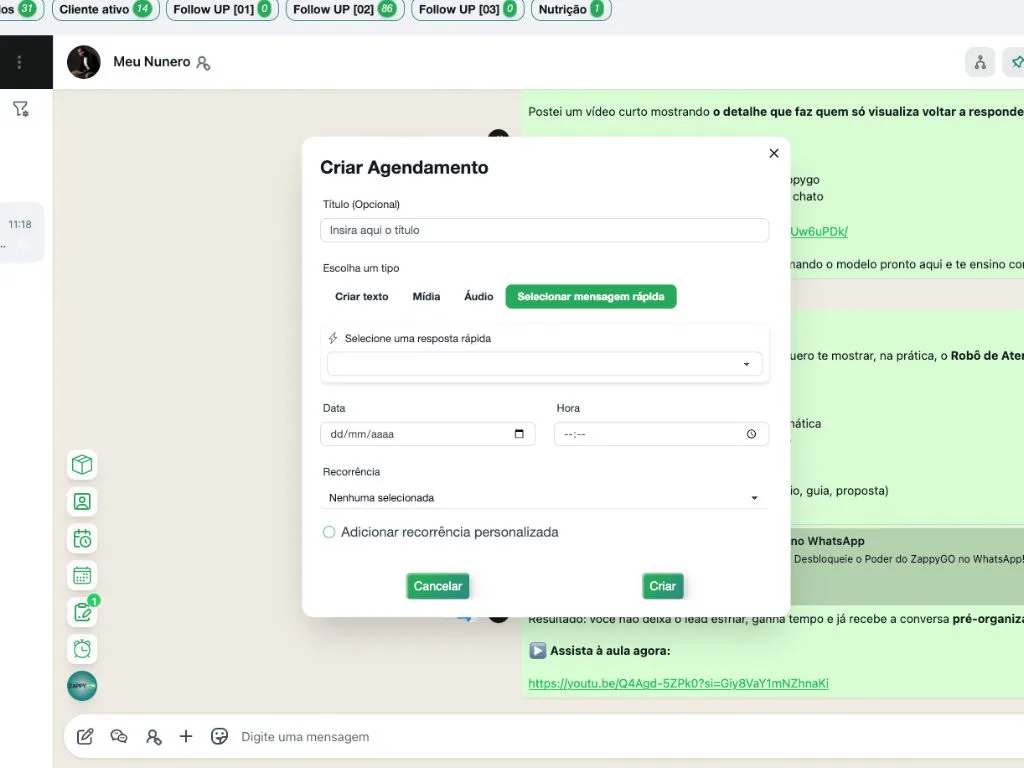 Com o ZappyGO, você organiza contatos, dispara mensagens, automatiza respostas e controla todo o seu funil em um só lugar. Mais vendas, menos esforço.